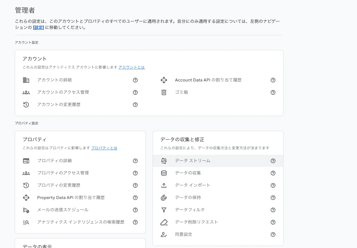 - 「管理」→「データストリーム」→ 該当のウェブストリームを選択